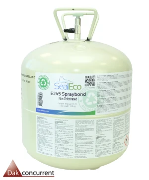 De Epdm spuitlijm E245 van de firma Sealeco is een snel drogende contactlijm geschikt voor het verlijmen van Amerikaanse en Europese Epdm. Epdm spuitlijm is geschikt voor de meest gangbare ondergronden zoals hout, beton, cellenbeton, staal en geschikte isolatietypes (Pir dakisolatie en Pir mineraal glasvlies) maar niet voor verlijming van Epdm op bitumineuze dakbedekking. De Epdm lijm is opgenomen in het Komo certificaat (zie bijlagen). De ondergrond moet vrij van oliën, vetten, stof en vocht zijn. De oppervlaktetemperatuur moet minimaal +5°C zijn.